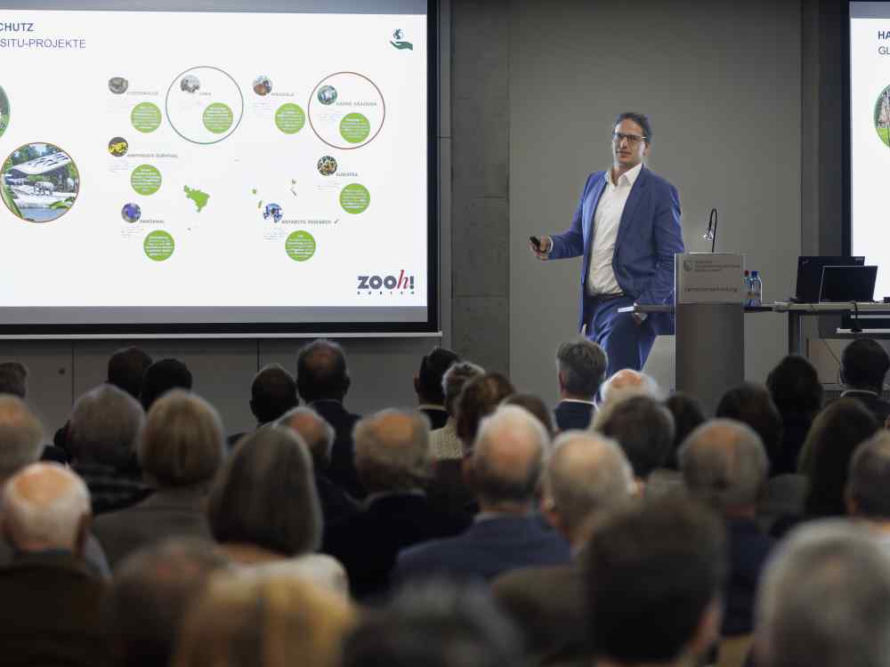 Im Anschluss gab Urs Baumann das Wort an Dr. Severin Dressen, Direktor des Zoo Zürich. Die Zürcher Kantonalbank unterstützt den Zoo seit Jahren als Hauptsponsorin. In seinem Vortrag gab Dr. Dressen einen spannenden Einblick in die Geschichte und Entwicklung des Zoos sowie in die vier Hauptaufgaben moderner Zoologischer Gärten: Artenschutz, Naturschutz, Forschung und Bildung.